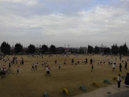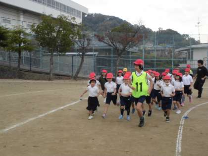最初の1周は、体育委員が先頭でペースを作り、2周目からは自分のペースで走ることになっています。