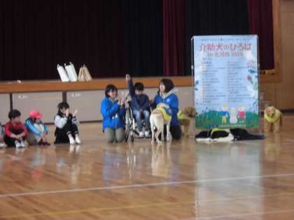 町で介助犬を見かけた時。声をかけたり触ったりしないようにということです。それは、働く犬のためでもあります。今日学んだことを、たくさんの人に広げてほしいというお話でした。