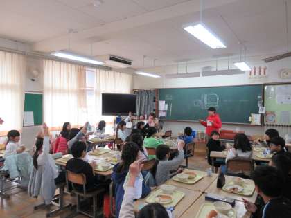 昨日の集会で保健委員会が予告していたハンカチ調べがありました。給食の時間に保健委員が各クラスに聞いて回っていました。それを集計してまた発表するようです。