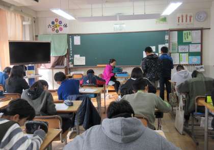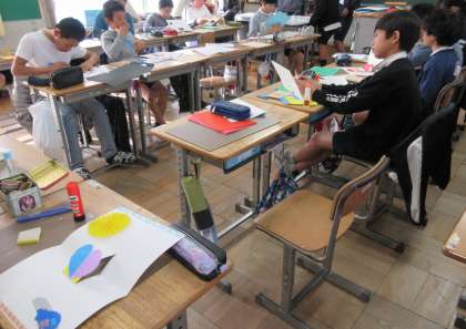 今は、2学期の学習のまとめやテストの時期です。6−1は、音楽のテストでした。リコーダーも聴いています。6−2は、飛び出すカードづくりです。工夫して作っていました。6−3は、算数のラリーです。これは、習った単元のプリントをどんどん進んでいく復習です。