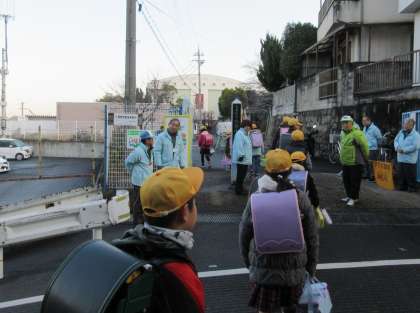 今日は、民生委員・児童委員さんによるあいさつ運動でした。「おはようございます」の声に迎えられて、子どもたちもあいさつを返します。中には、いつも見守り隊の方としているじゃんけんをする子も。おかげで、良い一日のスタートを切れます。