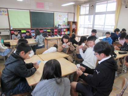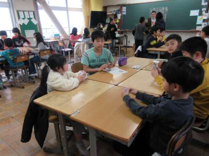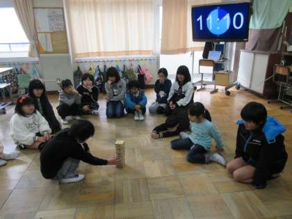 今までになかったゲームでジェンガをしている班がありました。輪になって、そーっとそーっとブロックを抜きます。少し揺れたら、みんなから「わあ」という声が。すごく集中していました。