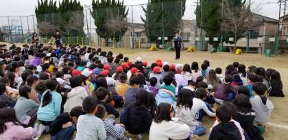 今日は、25年前に阪神淡路大震災が起きた日です。全員避難した後、その当時の様子や、いつ来るかわからない災害のためにしっかり備えることの大切さを話しました。最後に、阪神淡路大震災で犠牲になられた方を思って、全員で黙とうをして終わりました。