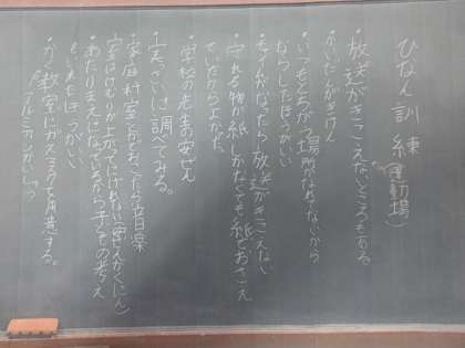 先日の地震避難訓練を受けて、防災を学習している4年生が、クラスで話し合ったことを校長室に報告しに来ました。放送の声の聴きやすさや階段の安全確保の仕方、次回の構想や、中には子どもの安全を最後まで確認する先生方の安全はどうなっているのか!?という、涙の出そうな意見もありました。皆さんから頂いた意見を、先生たちも参考にしたいと思います。