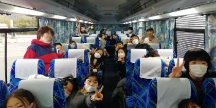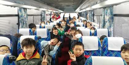 5年生59名、全員そろってスキー学習に出発しました!保護者の皆様、朝早くからお見送りありがとうございました。サービスエリアでも、みんな元気です!