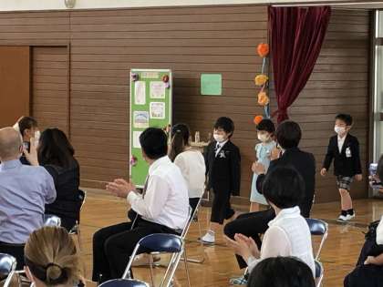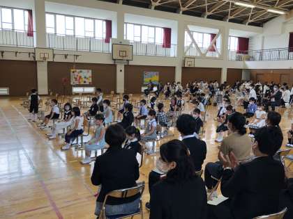 午後からは、入学式。この日を心待ちにしていた、1年生です。今年は、入学式前に練習する期間があったので、なんと入場は、自分たちで。堂々とした入場でした。さすがです。