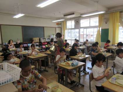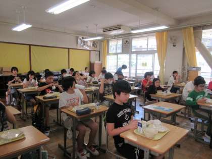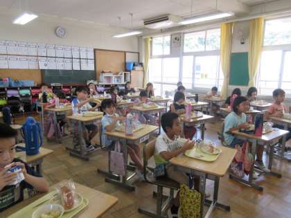 「いただきます」の後、どの教室静かに食べていました。今までなら、にぎやかな声が聞こえるところですが、本当にシーンとしています。