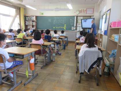 各学年で、新型コロナウイルスについて学習をしています。今日は2年生です。きちんとした知識を持って対応できるよう、間違った情報に振り回されないよう、学年に応じて勉強します。