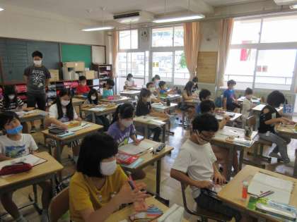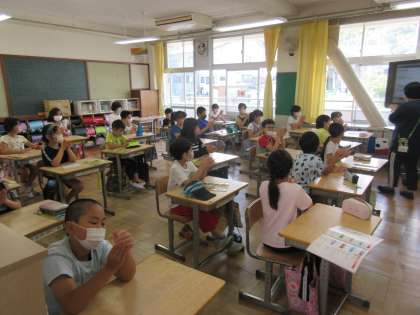 音楽の授業は、リズム打ちなど工夫して実施しています。
