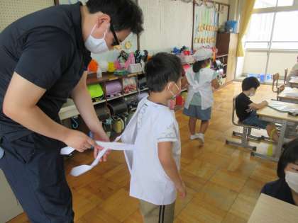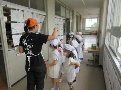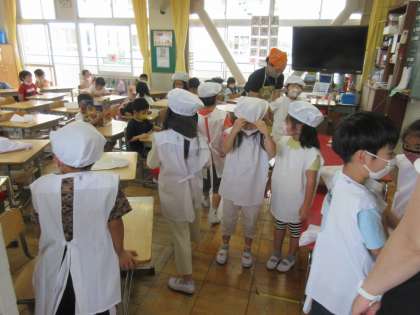 給食当番は、基本的に1週間ごとです。今日、初めて当番をするグループも、がんばって準備をして運んでいました。