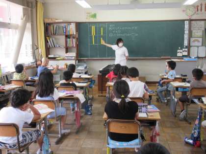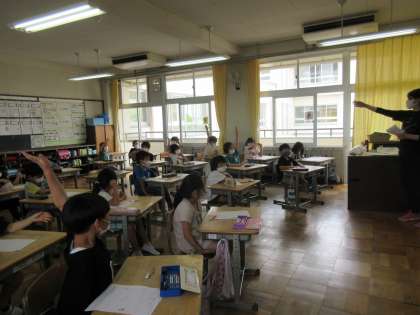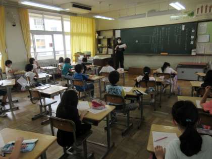 2−1の算数は、くり上がりのたし算でした。2−2では、この時期ならではの学習。咳やくしゃみをするときは?「マスクをする」「うでやハンカチで口をかくす」。どんな声かけをしたらいいの?「だいじょうぶ?」ときく。優しい声かけですね。