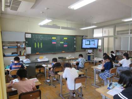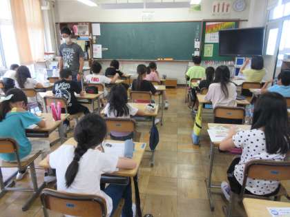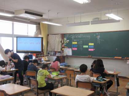 4−2では、算数の「わり算」のところを、1クラス2分割で学習していました。人数が少ないのは、分散登校以来です。集中して取り組んでいました。