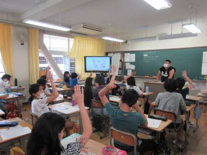 両クラス同時にやっていました「ちがいのちがい」。人は、自分と考えや行動が違う人に対して、排除や攻撃などのマイナスの気持ちになってしまうことがあります。でも、表面的なことではなく、もっとお互いのことをよく知っていけば、いい関係が築けるのではないでしょうか。今日は、その学習の入り口で、いろいろな違いについて考えました。