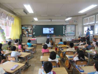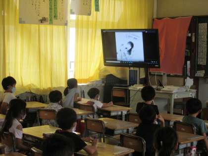 今週は、折り鶴週間として6年生の平和学習に合わせて、全校児童が折り鶴を折りました。集合型の集会ではなく、あらかじめ6年生が作っておいたビデオをもとに各クラスで折ることになっています。