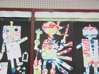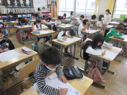 算数のテストや漢字学習に、真剣に取り組んでいる両クラスん子どもたち。すばらしい!そして、どちらのクラスにも、図工作品で仕上げた『ロボット』の絵が。たしか、国語の時間に「あったらいいなこんなロボット」も、考えていたような。このロボットの絵は、頑張る2年生を応援するロボットでしょうか。