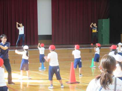 2曲目のダンスの練習に入りました。並び方の移動も上手にできています。動きの一つひとつが、とってもかわいく、決めのポーズは、かっこいいです。