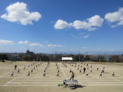 一番下の写真は、運動会の練習です。さわやかな気候、青空のもと、のびのびと表現できています。