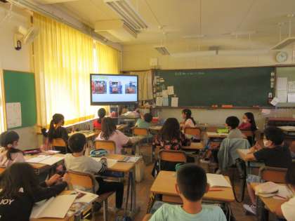 ノンフィクション作品を読み進めていた4年生、おすすめの本を紹介する練習をしていました。社会科では、消防署の仕事について、画像を見ながら学習していました。先生が、とってきた写真だそうです。