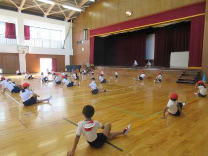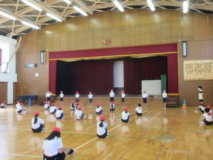 1年間のいろいろな場面で、実行委員が活躍するようにしている5年生。運動会の練習も、実行委員が中心になっています。今日の練習のことや、ストレッチなども子どもたちが進めています。