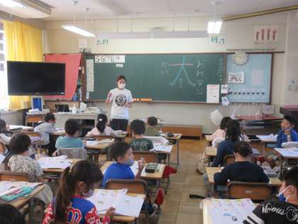 国語の漢字学習も進んでいます。今日は「大」。「大食缶の大!」、身近な言葉に結び付けて覚えています。