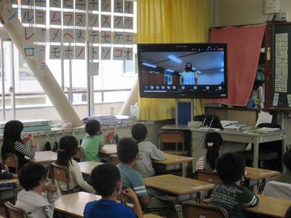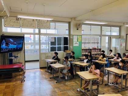 各教室では、しっかり画面を見て聞いてリモート参加していました。