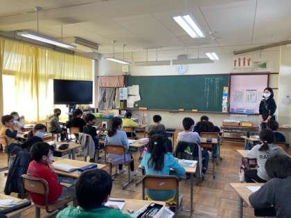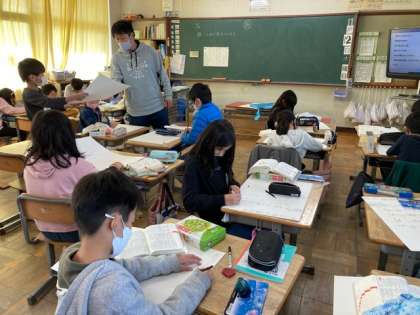 3-1は、ことわざを調べていました。大きな紙に書いて紹介するのでしょうか。3-2も国語でした。一番下の写真は、別の時間に、理科の実験をしているところです。