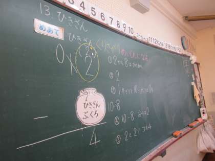 算数の繰り下がりのあるひき算は、隣から借りてきて…と、小さく唱えながら取り組んでいます。