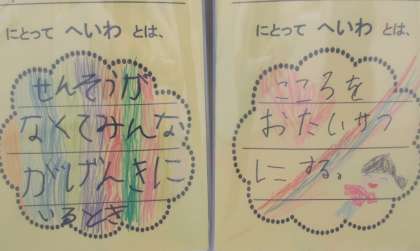 しかし、今年は新型コロナウイルスの関係で、全員が集まる集会形式ではなく、各学年が平和週間に取り組みをし、それを録画して交流するという形にします。