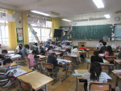 北条小学校では、毎年、各学年での平和学習の取り組みを持ち寄って、全校で平和集会を持っていました。集会の最後に全校児童で歌う『折り鶴』は、感動的です。