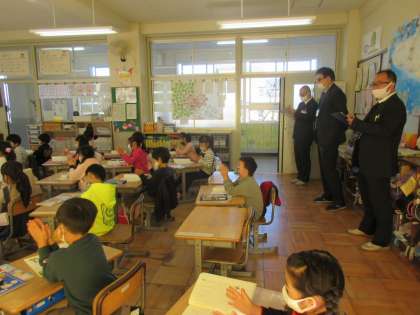 今日は、大阪府教庁市町村教育室小中学校課と大東市教育委員会より指導主事の先生が学校訪問に来られました。
