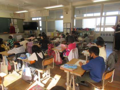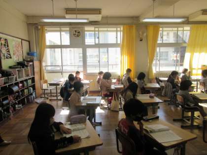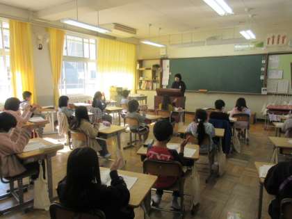 1組は、国語です。カタカナで表す言葉集めでした。2組は音楽。手拍子でリズムをとって、表現していました。