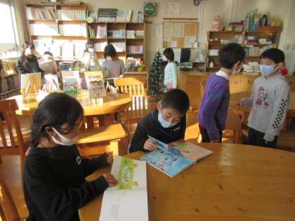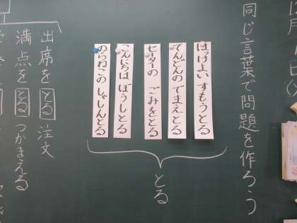4-2は、図書の時間。今、取り組んでいる図画工作のために絵本を探しています。4−1は、同じ言葉でも意味がいろいろあるものを使って、問題を作っています。頼りになるのは、辞書です。