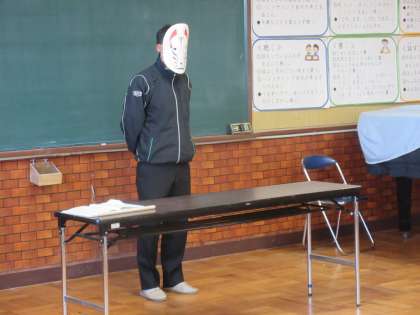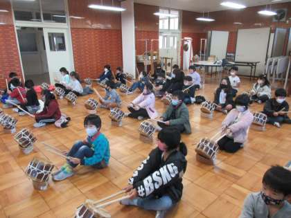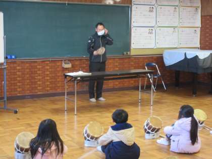 生活科で、『レジェンド』といわれる人物から、地域のことを調べてほしいという依頼を受けて頑張っていた2年生です。今日は、ついにそのレジェンドが、2年生の前に登場しました(1学期のレジェンドは、校長でした)。2学期のレジェンドは、太鼓の音が好きらしいから、みんなで太鼓をたたこう!と、ドンドコドンドコたたいていると、レジェンド登場。