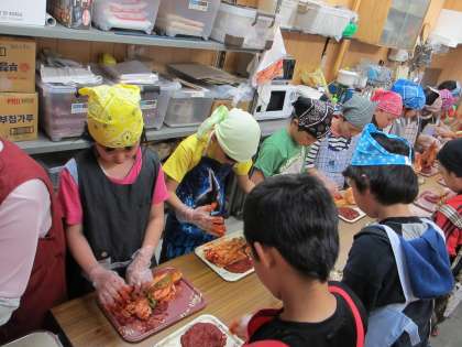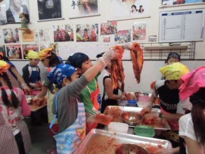 キムチづくりでは3軒のお店で体験をしました。クラスによってお店が違うので、できれば味を比べてみたいものです。どのお店もていねいに教えてくださいました。
