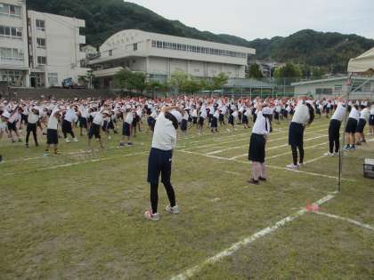 5月14日(水)1時間目、3回目の運動会の全体練習をしました。今回はラジオ体操と応援合戦の練習を中心に行いました。ラジオ体操は1回目の練習よりもしっかりと曲げたり伸ばしたりできていました。応援合戦は赤白とも、応援団、児童席ともによく声が出ていました。