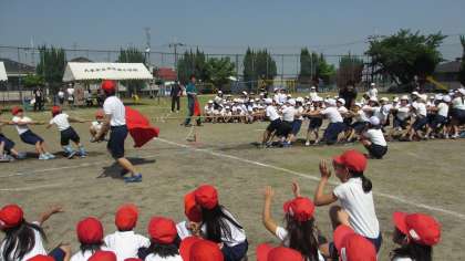 5月16日(金)4回目の全体練習をしました。児童会種目の綱引きの練習を中心に行いました。練習でも、力が入りましたね。特に3年生5年生チームは、引かれては引き返し、とてもよい勝負でした。