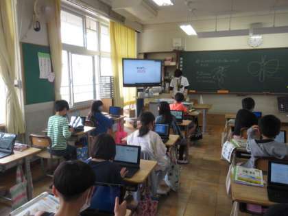3−1は、社会科です。校区地図を見ながら、どんな施設があるか出し合っていました。3−2は、タブレットを使って、春の生き物を調べるそうです。ログインは、もうさっとできるようになっています。