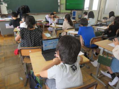 5−1は、タブレットを使って、世界の国について調べちました。もう、検索もすっかりお手の物です。4−2は国語。文章の段落分けをしていました。