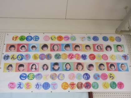 教室の後ろには、クラスの目標が貼られていました。一人ひとりの笑顔もかわいいです。