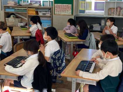 鍵盤ハーモニカにかわる電気で音が出る(?)楽器です。交代で使いながら練習です。
