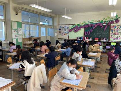 1組も2組も、静かに黙々とプリントに取り組んでいます。集中していますね。