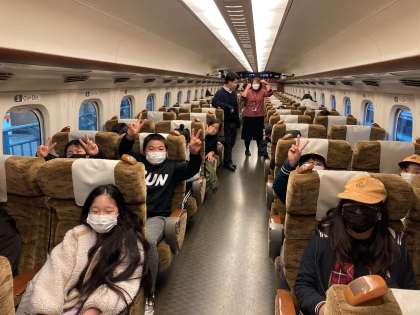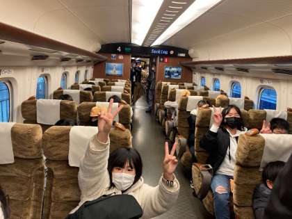 新大阪の様子と、出発直後の車内です。写真はピースをしてますが、おしゃべりもなく、とても静かに過ごせています。