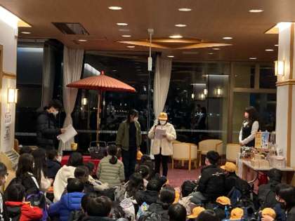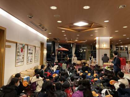 入館式の様子です。今夜は、北条小学校が貸切です。