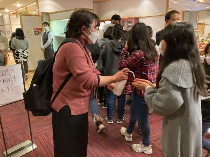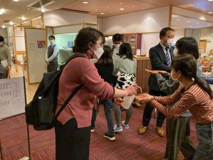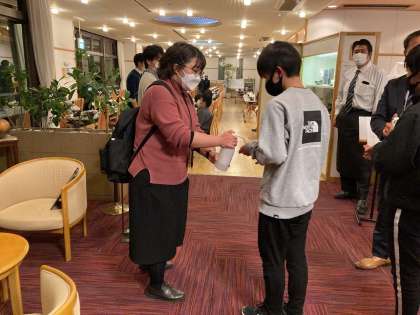 夕食前の検温と、手指消毒です。この旅行の間、何か一つ行動したら消毒、どこかへ入る時は検温と、感染対策に気をつけています。
