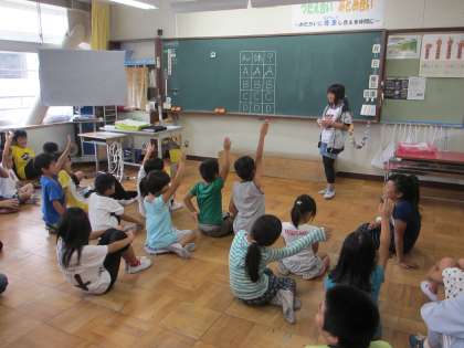 7月11日(金)第2回なかよし活動をしました。「なかよし活動」は1年生から6年生までの縦割り小グループで仲良く遊ぶ取り組みです。グループで何をするかは6年生が立案し、進行することになっています。6年生全員にリーダーとしての意識を育てたいとのねらいからグループの数を大幅に細分化し、全員が役割をもつことができるようにしています。