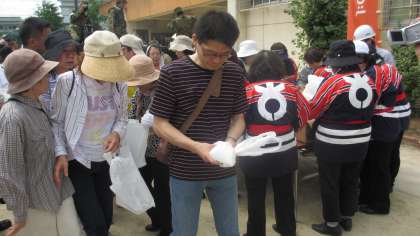 エアー式の救護テントがあっという間に立ちました。非常用の水やご飯が配られました。