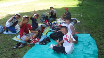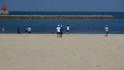 開校式が終わると、お弁当を食べて、敷地内海水浴場の浜で遊びました。