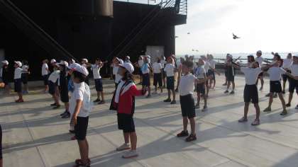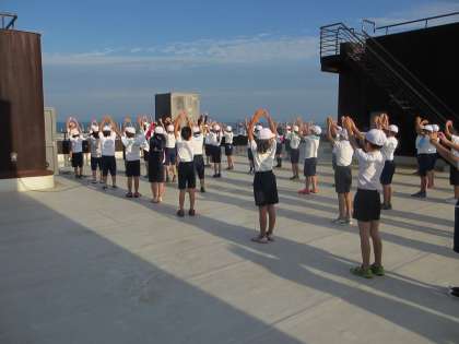 2日目の朝です。快晴。吹く風が心地よい朝です。ラジオ体操をして朝食です。朝からみんな元気です。