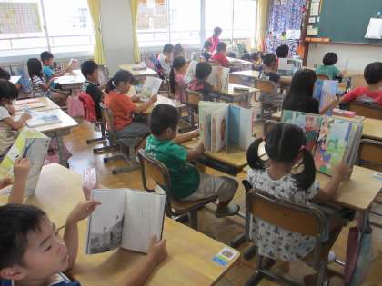 9月11日(木) 読書タイムの様子です。全学級静か本に向かっています。