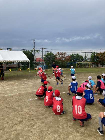 5年生は運動場でリレーの練習をしています。始めにバトンわたしの練習をしていました。実際のリレーでは、とてもスムーズにバトンわたしができていました。休み時間も練習している成果が出ています。